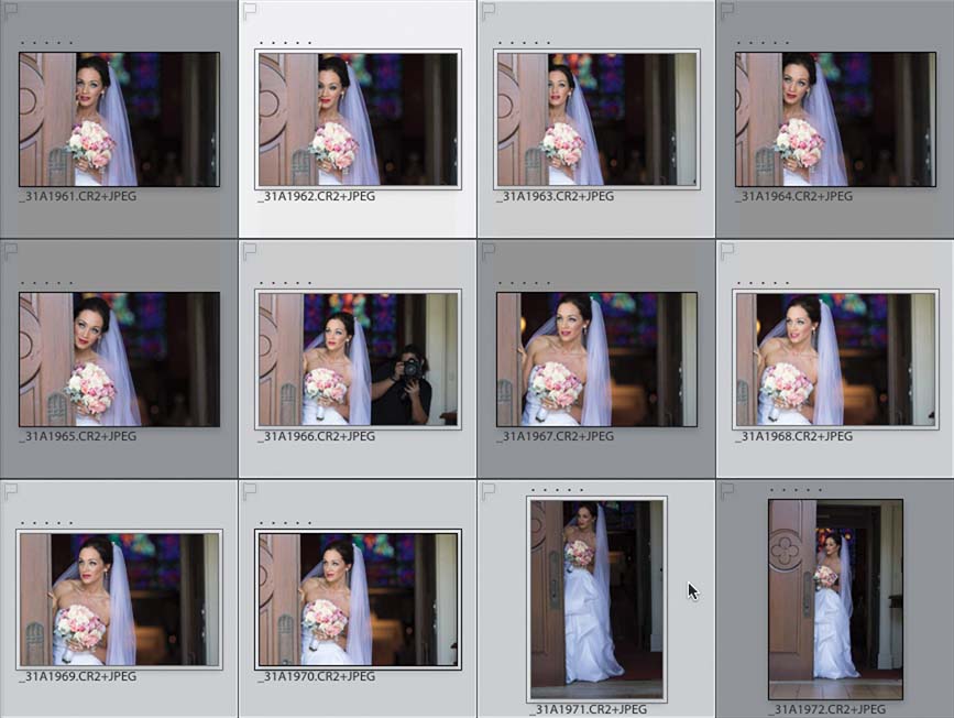 Press-and-hold the Command key on a Mac, or the Ctrl key on a Windows PC, and click on as many photos as you’d like selected. You can do this either in Grid view or in the Filmstrip along the bottom.