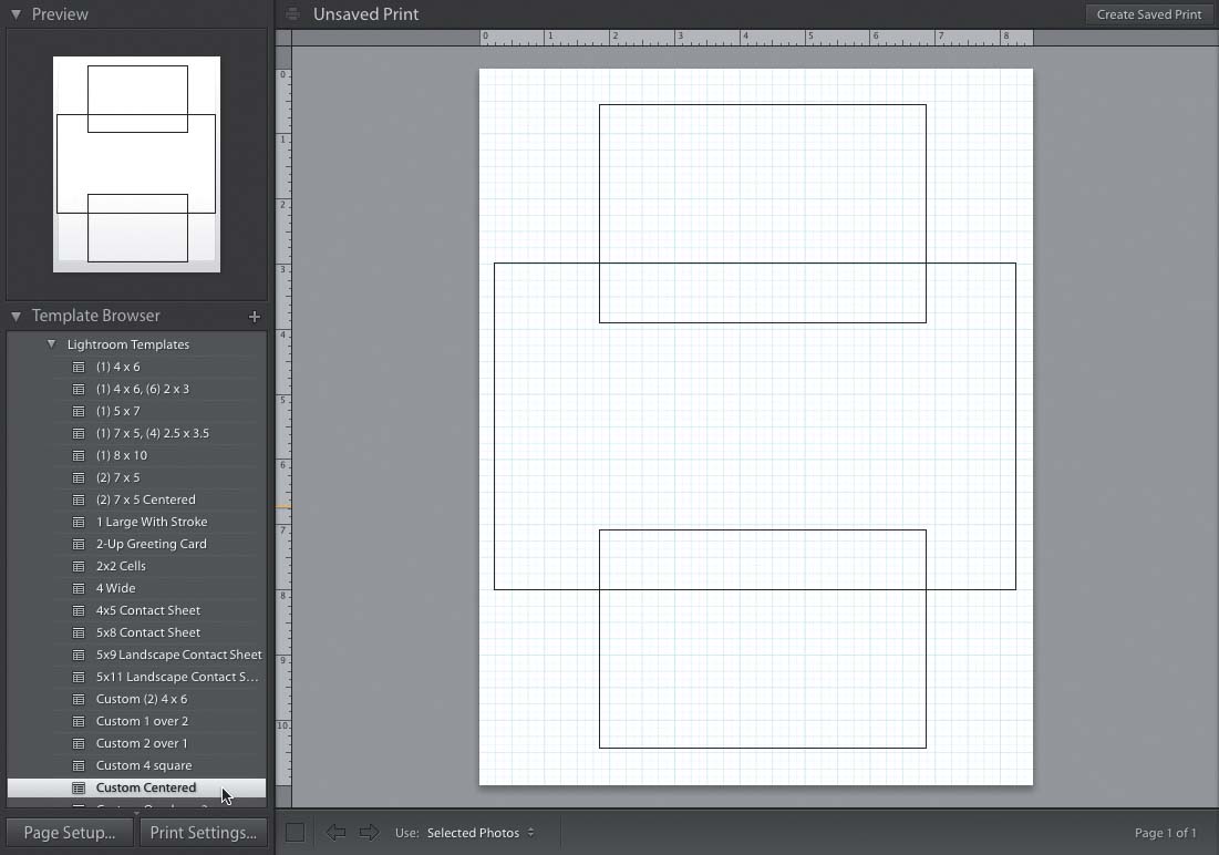 The easiest way to do this is to start by choosing a template that already has an image overlaying another. For example, try clicking on the template called “Custom Centered” over in the Template Browser in the left side Panels area (as shown above). That brings up the layout you see above, with two image boxes overlapping a larger image box. If you only want one image overlapping, just click on the one you want to delete and hit the Delete (PC: Backspace) key. You can resize either of the two remaining boxes by just clicking on them and dragging the corners or sides. Once they’re positioned where you want, at the sizes you want them, drag-and-drop images into those cells right from the Filmstrip at the bottom. To change the order of the images (which image appears in front of which), Right-click on an image and choose either Send to Back or Send Backwards (Send Backwards moves it back one level at a time, which is handy if you have more than two images. With just two, it doesn’t matter). There are also Send Forwards and Bring to Front choices, which bring your image forward or to the very top of the stack.
